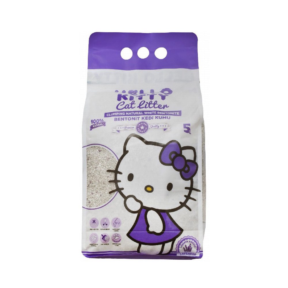 Hello Kitty Cat Litter is a premium clumping bentonite litter infused with a soothing lavender scent. This 5-liter package features 100% natural white bentonite that offers excellent clumping action and odor control for your cat's litter box needs.