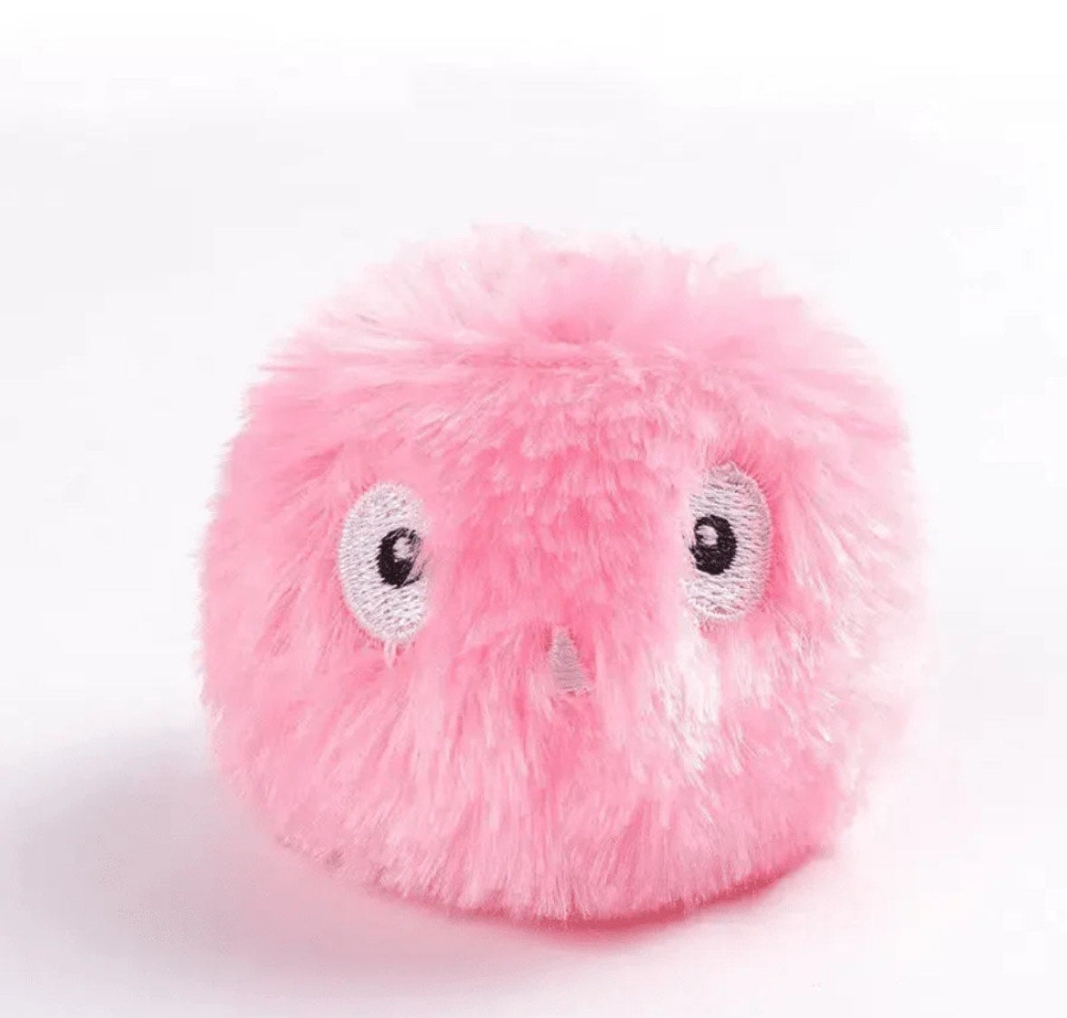 This charming pink plush ball toy features soft, fluffy fur and an adorable face with embroidered eyes, making it an irresistible plaything for cats. Enhanced with catnip, this interactive toy encourages active play while satisfying your cat's natural hunting and batting instincts.