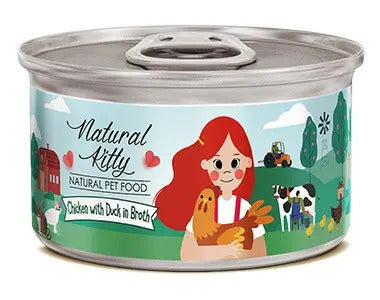 Natural Kitty Chicken with Duck in Broth is a premium wet cat food that combines tender chicken and duck meat in a savory natural broth. This 80g can provides a nutritious and hydrating meal option made with natural ingredients.