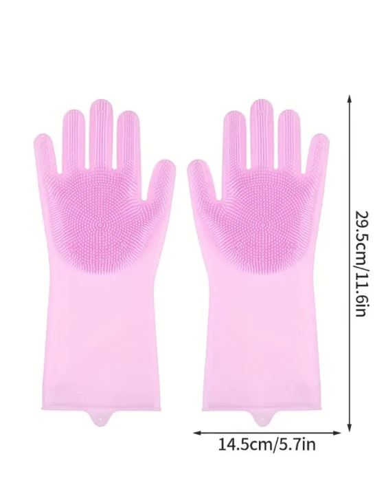 1Pair Of Pink Soft & Durable Silicone Grooming Glove For Pet Bathing And Hair Removement, Suitable For Showering Of Cat And Dog.